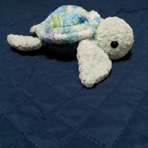 Watercolor crochet sea turtle. Blue and Green in color. Measures 7 inches in length and 5 inches wide.